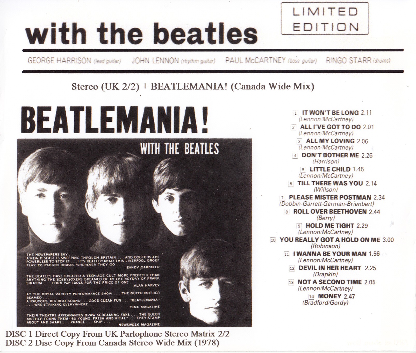 WITH THE BEATLES – 4 VERSIONS / 2 CD’s !